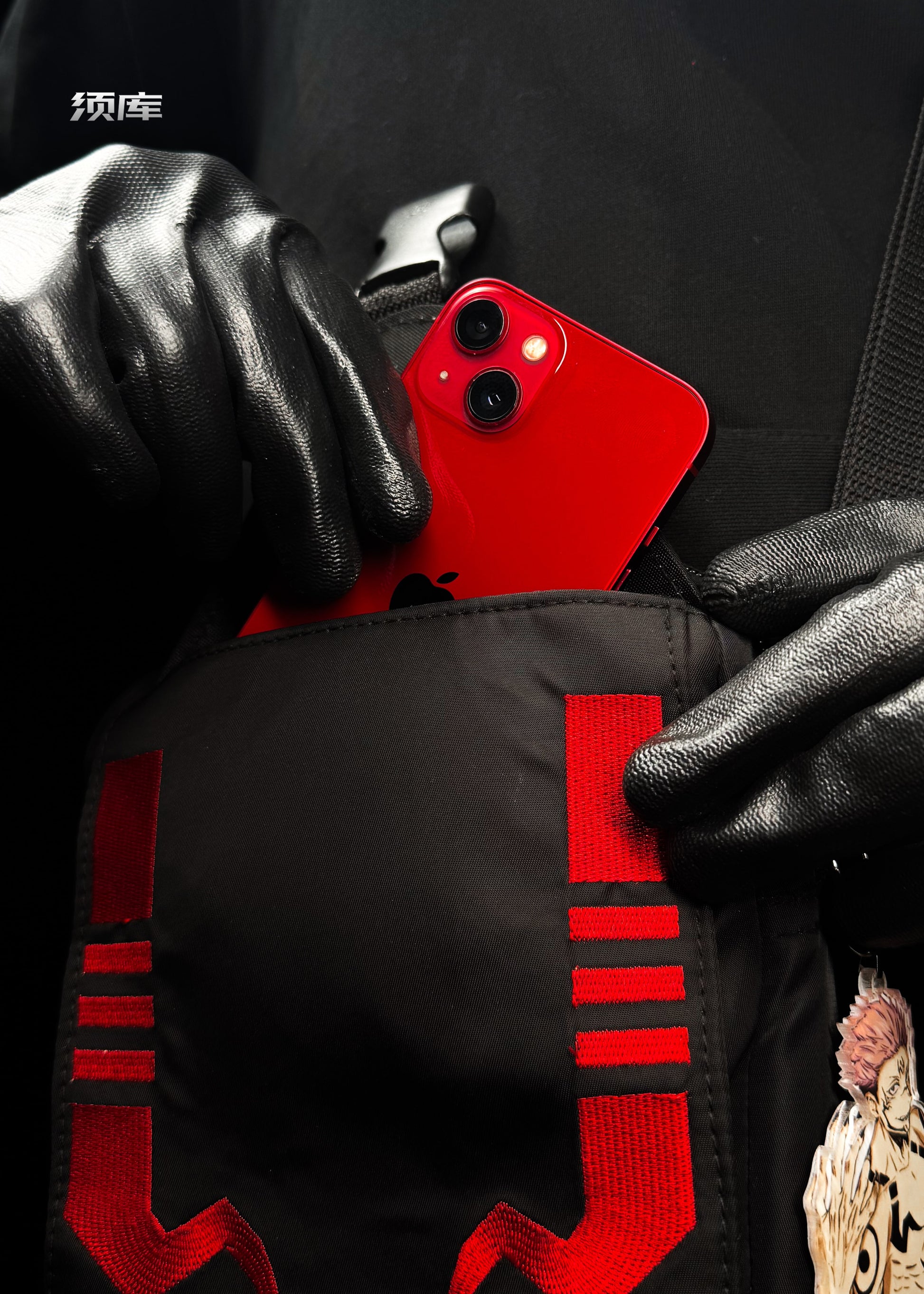 Sleek black base with bold red design accents for a modern, anime-inspired look. -