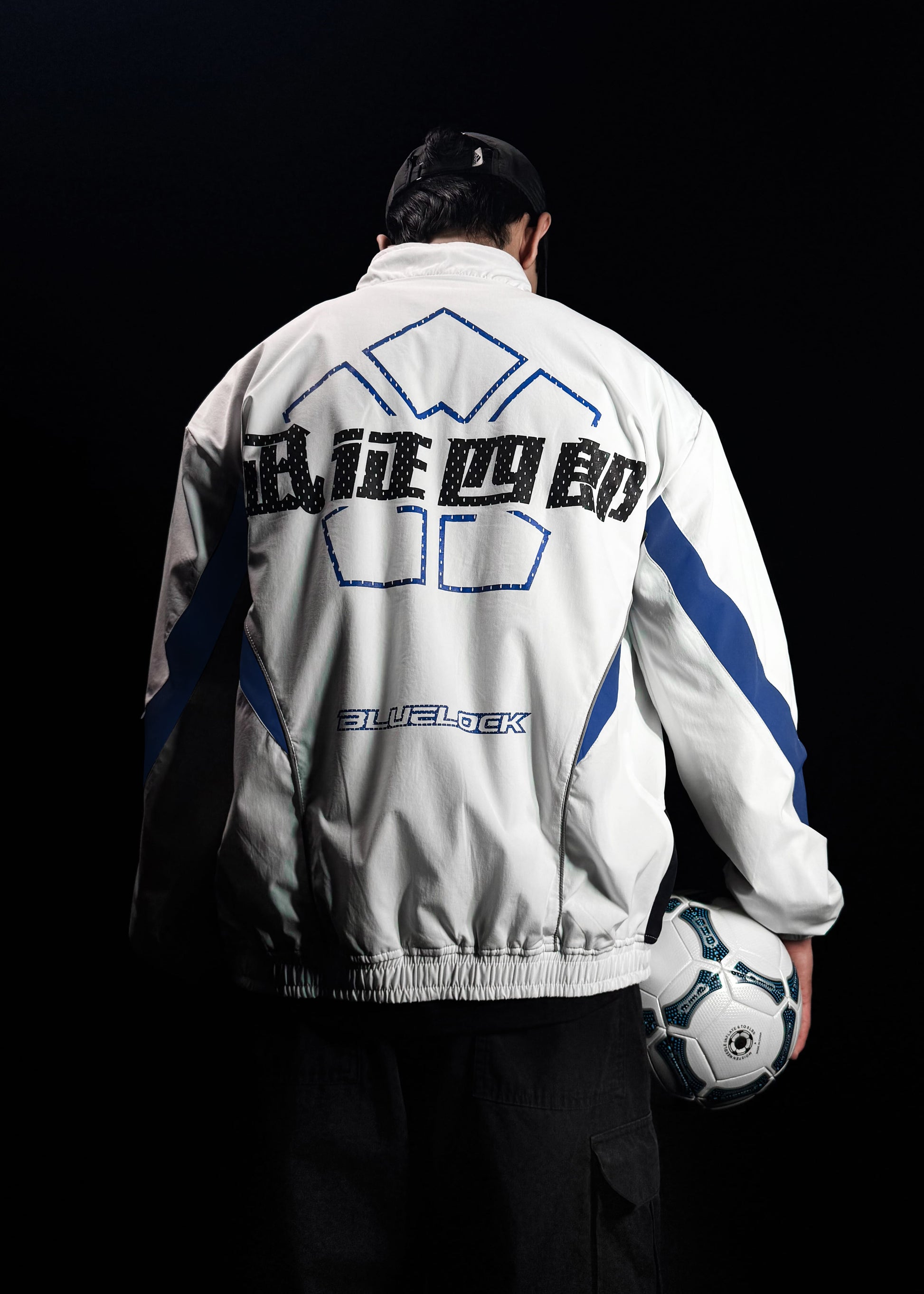 Blue Lock (Japanese Manga) inspired design featuring bold typography, emblem detailing, and contrast blue panels